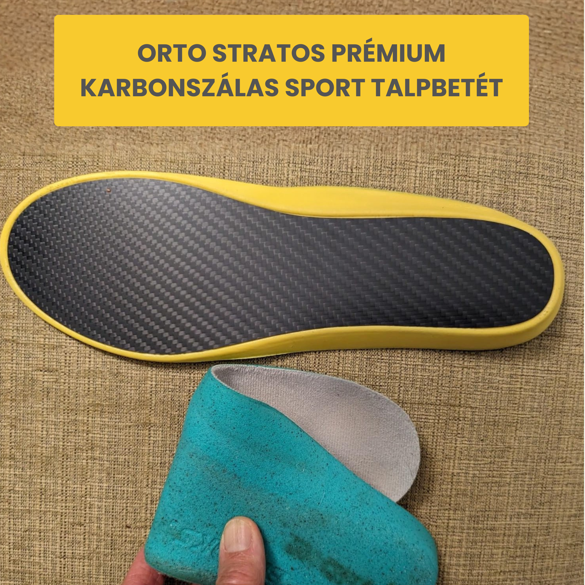 A karbonszálas anyagot a repülőgépipar és a motorsport is előszeretettel használja, mert rendkívül könnyű és erős. Az Orto Stratos ezt a technológiát ülteti át a sport talpbetétek világába: