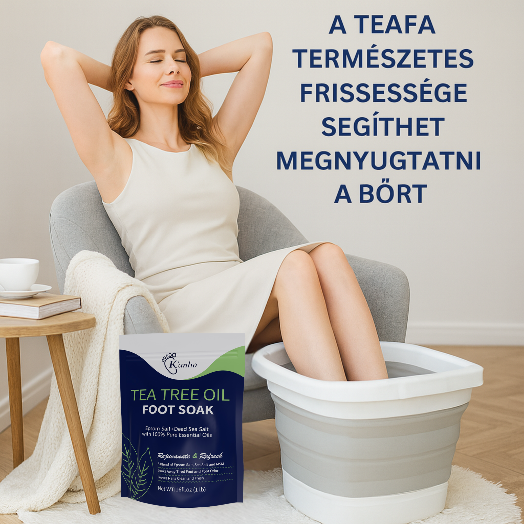 „Engedd, hogy a teafa tisztasága és az ásványi sók mélysége megtisztítsa a napot a lábaidról.”